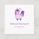 Kvadra affärskort med ett viskigt teckning av en coola och funky rosa encorn som har en lila mane och saga. Den här söta varelsen bär hjärtformade solglasögon och dekoreras med små stjärnor.