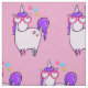 Patternerad väv med en vit teckning av en coola- och funky rosa-kubik som har en lila mane och svan. Den här söta varelsen bär hjärtformade solglasögon och dekoreras med små stjärnor. Rosa bakgrund.