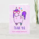 Tack för hälsningskort med en vit teckning av en enhörning av coola och funky rosa som har en lila mané och historia. Den här söta varelsen bär hjärtformade solglasögon och dekoreras med små stjärnor och ett hjärta. Rosa vattenfärgsbakgrund.