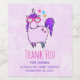 Tack för evenemanget flaska-etiketter med en vit teckning av en coola och funky rosa-kubik som har en lila mane och saga. Den här söta varelsen bär hjärtformade solglasögon och dekoreras med små stjärnor. Rosa vattenfärgsbakgrund.