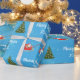 Elegant, minimalistisk julomslutning papper med en enhörning som drar jultomtens själ mot ett Julafton träd dekorerat med silver baubles. Unicornen har en röd och gyllene mane och svan och slummet bär tomten tillsammans med många presenter. Papper för inslagningen omfattar även hälsning "God jul" och namn Joanne. Kom ihåg att personalisera namn! Du kan också byta hälsning till "Glad helg" om du vill. På blå bakgrund med snöflingor.