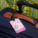 Den här bagagetaggen har en söt, viskös, vit unicorn med blommor, stjärnor och faux guld glitter på rosa bakgrund. Anpassa den med ditt namn och din kontaktinformation.