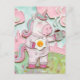 En berömvärd rosa Unicorn i PJ:s har sitt morgonkaffe och ett ägg när hon försöker vakna och få redo för en ny dag med rosa moln och ett slott i bakgrunden
