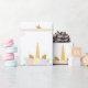 Unicorn-dusch-presenten med ett fint Unicorn ansikte och regnbågar på vit bakgrund.