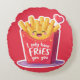 A cute and colorful cartoon illustration of a red French fries carton with a happy kawaii smiling face. The design features a floating red heart and the romantic funny pun quote "I only have FRIES for you". The image has a white sticker border, making it perfect for Valentine's Day greeting cards, fast food lovers, and humorous romantic gifts. Isolated design.