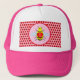 Den här fantastisk-hatten har söta små Valentineser Bee. Bin har en gult av hårig med svart rand och rött antenn. Den håller fast vid ett rött hjärta som formas biet i bikakan och är omgiven av solblommor. Varje blomma har röda petaler som matchar det romantiska bin och ett svart centrum. Det finns en vit text mitten i bikakan som säger det romantiska budskapet "Bee mine". Det här lilla biet är idealiskt för att visa kärlek för någon speciell. Det finns en mönster av små röda solblommor runt bin.