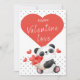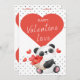 Cute Valentines day Card Baby Panda Heart. Det här Alla hjärtans dag-kortet är en bra illustration av en baby-panda som håller ett rött hjärta. Bakgrunden är vit med rött hjärta och meddelandet på kortets framsida lyder "Lycklig Valentines Kärlek". Perfekt att skicka till en älskad eller vän som kärlek pandar. Insidan av kortet är fylld med ett citattecken som gör att du kan anpassa ditt meddelande.