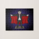 En söt tecknad vampyr klädd som Dracula sprider sin rödklädda kloak i det här originalverket av Richard H. Fay.