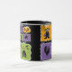 Knäppssäsong med en aning charm! Det här fina mugg har en fin linje av Halloween-favoriter - en vampyr, en häxa, spöken, fladdermus och lekfulla katter - som var och en ramlades in i pulserande skuggor av orange, lila och grönt. Med Coquette-bågar läggs en vit snyggt-vrid till, vardera tecknet skapar mot den svarta bakgrunden. Perfekt för att du ska få tag på dina favoritdrycker i hetten samtidigt som du firar Halloween- roligt och festande.