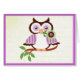 Utformningen av Cute vår uggla, med ett sött vår uggla i lila och mörk brunt med en blomma i sin näsa (lagförslag) på gren med grönt löv. En bra, feminin, dekorativ utformning för uggla älskare. En inslag av Trina Clark.