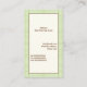 Cute vår uggla vid gren med grönt pläderade affärskort i gräns, med en söt uggla i vår i lila och mörk brun som håller en blomma i sin näsa (räkning) på gren grönt på löv och grönt i gräns i i i . En bra, feminin, dekorativ utformning för uggla älskare. Trina Clark konst.