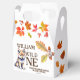 Vilden unge i varg i späd fluffy en födelsedagsfest i skogen är för gåva med brunt höst löv, som är fin för vintertid party.