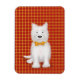 Låt någon le med den här söta, flexibla kylmagneten med Angus McScone som Väster Highland (westie) tittar mycket smart i sin tartan-butik.