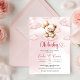 Cute vattencolor rosa nalle över molnet inbjudningar
