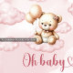 Whimiscal design för Baby Shower-inbjudningar har nallen för rosa av linnefärgning över molnet med elfenbensballonger. Modern lekfull kalligrafi-teckenskrift med hjärta säger "Oh baby". Tveka inte att kontakta mig för matchande artiklar eller anpassning. Violetta utskrifter ©