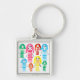 Cute vattenfärgsflickor funky modern konst fyrkantig silverfärgad nyckelring