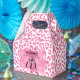 Rosa och vita leoparder mönster gable stil-affischer visar ditt tack på framsidan med chic. Perfekt för vildens första födelsedagsfest. MATCHING-objekt i vår butik.