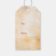En söt porslinsängel visas på en grädda och guld vintage med en sprinkl av julstjärnor på dessa helgdag presentmärkre. "Joy to the World" är i ett fint rött skript som du kan ändra om du vill ha en annan fras. Redigera familjen namn och året efter eget val. Observera att på baksidan finns etiketterna "till" och "från" som du kan använda, ange ytterligare ord eller ta bort om du vill att baksidan ska skrivas helt för hand.