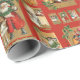 Artist K. Gassaway-illustrationer ca 1909 med charmerande Viktorianska barn i julhelgen som firar med jolly Santa på ljusa färger på röd bakgrund.