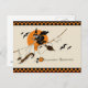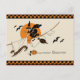 En söt, svart, vit och orange, vintage illustration av en liten, gammal häxa, som rider hennes pjäs över en garderoba med handdukar och filtar som hänger av den. Häxan rider över en ljus, orange, fullt, med en grupp svart fladdermus. På illustrationen står det "Halloween Hälsning" bredvid en liten pumpa. Häxan har vitt hår, en svart spetshatt och en svart klänning med en vit hink på den. Mycket viskigt och förtjusande. Underbar för dem som kärlek Halloween, vintage konst, pumpor och häxor. Kolla min butik, SpookyGhost, om du vill ha fler vintage Halloween-gåvor.