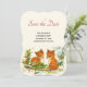Spara datumkortet med en fin teckning av ett par rävar med en vänlig fågel i närheten. Omringad av hull- och gräs-koner och löv.