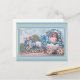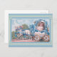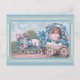 Önska din familj och dina vänner i glad påsk i vår med det här söta vykortet för vintage med en återillustration av en flicka i en äggvagn som dras av ett lamm!