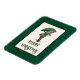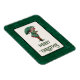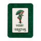 Festive helgdag magnet-funktionen har sänkt ut från antika julvykort av en söt liten flicka klädd i sin helgdag finaste med matchande paraply. anpassadet är "God jul" eller hälsning. Mörk grönt vintage, harelquin, mönstrad bakgrund