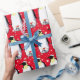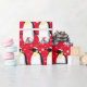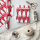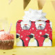 Ha en sydpolskjul med den här roligten som har en mönster vuxen pingviner och spädbarn som bär jultomtar mitt i vitt snöflingor och mot en röd bakgrund.
