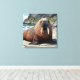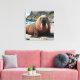 Walrus themed wall art. A cute walrus laying on a sandy beach by the ocean on a sunny day. Background of cliffs and blue ocean waves.