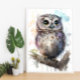 En söt vattenfärg av ett sött lycklig uggla. Ett sött tillskott till en daghem, barnsovrum, lekrum eller studierum.