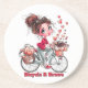 Cute Watercolor Girl on Bicycle Coffee Coaster Underlägg