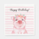 En bra vattenfärg gris med blommigt krona över rosa rand och Grattis på födelsedagen som lätt kan anpassas med bara några klick!