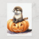 Cute Watercolor Halloween Otter Vykort