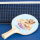 Ping pong paddlemed en söt vattenfärgsmålning av en mor-lejon som håller henne baby unge. En söt lila-blommigt buquet under dem ger den här söta och snygga bilden en mjuk nyans. Ljusblå bakgrund.