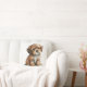 Cuddle up with this adorable throw pillow featuring a close-up image of a cute Poodle dog on a white background.