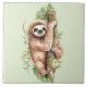 Cute Watercolor Sloth och Tropical Löv Kakelplatta