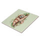En keramisk bricka med söt vattenfärgdesign med en söt lutning som hänger på en träd gren omgiven av tropiska löv av grönt. Ljust oliv grönt bakgrund.