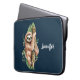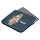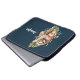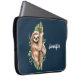 Laptop sleeve med en söt vattenfärgsdesign med en söt lutning som hänger på träd gren omgiven av tropiska löv av grönt. Mörk blått bakgrund.