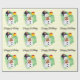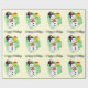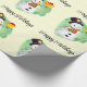Detta är ett berömvärt papper för julomslutning som innehåller en vattenfärgsbild av ett snögubbe som håller en gåva på en ljusskuren gult som har stripat mönster med ord "Glad helg". Texten på pappra för radbyte kan anpassas med ditt eget eller lämnat som det är.