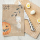 Den här roligten och den festliga Halloween-kökshandduken har en söt och fläckig vintage som inspirerats av. Olika Halloween-tecken och bilder, i vattenfärgsform stil art, visas runt gräns. En söt mummi bildas i högerna grund och en liten svart katt bildas på den lämnat, med jack O'-lantern mellan dem. Ett spöke visas i toppen lämnat med lite fladdermus till högerna. Gräns har en enkel svart utandning av blad. Bakgrunden har en papper design för beige, rustik, vintage stil. I mitten av handduken står "Bus eller godis", som du kan anpassa för att inkludera ditt namn, ett citat eller annan anpassningsbar.