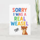 Beklagligt kort med en söt weasel-karaktär med humör text om att bli tagen "rödhänt" med klibbig tassar. Perfekt för lättskrämda ursäkter och skapar någon le efter ett misstag. Generativektigt innehåll