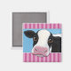 Cute Whimsiques magnet skulle göra perfekten till gåva eller djurbeläggning till vilken ko som helst älskare! Utformningen har en svart och vit ko med brunt ögon som torkar över rosa rand. Artwork © Lisa Marie Robinson. Alla Höger reserverade.