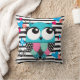 Cute Whimsical Blue Uggla med ögonfransar Kudde