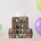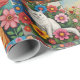 Adorable folk art style whimsical colorful cats and flowers birthday gift wrap.