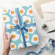 Den här söta pappra inslagningen har en vit mönster av äggulor i tårblått och gult.