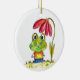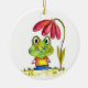 Cute Whimsical Grönt Frog under en röd blomma Julgransprydnad Keramik