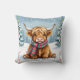 Den söta julen säsong dekorativ kudde, som har en vattenfärgsillustration av baby höglandskö i sitta i ett snäckt fält under en vinterdag med en bakgrund av det dekorerade gräs stil.