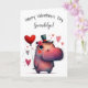 Cute Whimsical Hippo Happy Valentine's Day Kort