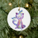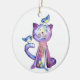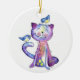 Cute Whimsical Lila Cat with Birds Julgransprydnad Keramik
