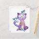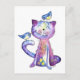 Cute Whimsical Lila Cat with Birds Vykort